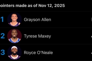 神来之笔!鲍威尔刚过半场 单手扔进超远压哨三分