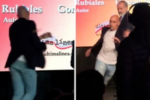 24直播11月14日讯 前西班牙足协主席鲁比亚莱斯在新书发布会遭其叔叔路易斯·鲁本投掷鸡蛋袭击未遂。鲁比亚莱斯称袭击者精神不稳定,所幸被拦下,未确认其是否携带武器。他表示写书是为讲述真相,并称此事件令人遗憾。