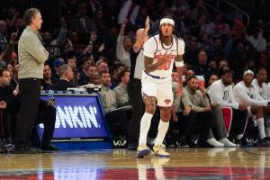 紧急止血!尼克斯传导不出机会 布伦森击地助攻阿努诺比压哨扣篮