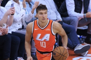 本场比赛博格丹·博格达诺维奇出战26分29秒,9投3中,三分6中1,罚球3中2拿到9分7篮板5助攻1抢断。