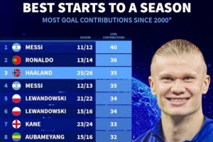 24直播11月19日讯 哈兰德本赛季表现神勇,各项赛事已直接参与35球,创下新世纪单赛季同期第三高纪录。这一数据仅次于梅西(40球)和C罗(36球),展现了其顶级的得分能力,与梅西并列第三。