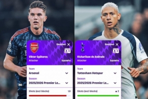 24直播11月21日讯 英超北伦敦德比在即,数据机构对比了阿森纳的约克雷斯与热刺的里沙利松的英超数据。里沙利松在射门、进球、射门转化率和过人次数等关键项上均占优,状态更佳。