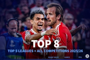 体育资讯11月21日讯 五大联赛即将重燃战火,《转会市场》统计了本赛季至今五大联赛球队的各项赛事场均拿分情况,即将在欧冠正面对决的拜仁和阿森纳分列前二。