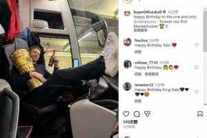 勒沃库森社媒晒出阿隆索执教球队期间与奖杯的合照,配文:“祝独一无二的阿隆索生日快乐,永远是我们的首位冠军教练。”