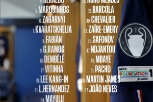 前锋:7-克瓦拉茨赫利亚、9-贡萨洛·拉莫斯、10-登贝莱、19-李刚仁、29-巴尔科拉、47-恩贾恩图、49-姆巴耶