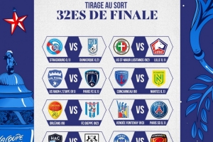 24直播12月02日讯 法国杯32强抽签揭晓,巴黎圣日耳曼客场对阵法丙球队旺代丰特奈。多组法甲球队将迎战低级别联赛对手,包括里尔、南特、雷恩等,法甲球队甘冈则遭遇法乙对手拉瓦尔。
