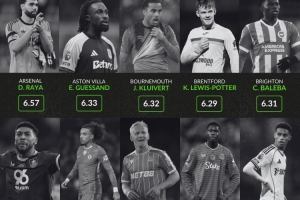 24直播12月02日讯 WhoScored公布了本赛季英超各队场均评分最低球员(出场超400分钟)。拉亚(6.57)、柯蒂斯·琼斯(6.34)和萨维尼奥(6.41)在列,伯恩利的劳伦特以6.11分垫底,反映了各队部分球员的低迷表现。