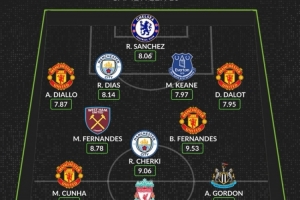 24直播12月09日讯 英超第15轮最佳阵容由whoscored评选出炉。库尼亚、埃基蒂克领衔锋线,B费与谢尔基坐镇中场。曼联与曼城球员成为绝对主力,共有六人入选,其余球员来自埃弗顿、切尔西、纽卡和西汉姆。