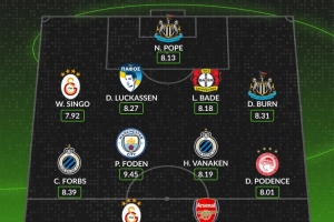 24直播11月06日讯 WhoScored公布了欧冠本周最佳阵容。门将为波普。后卫线包括辛格、卢卡森、巴代和丹-伯恩。中场由博尔赫斯、福登、瓦纳肯和波登斯组成。前锋则是奥斯梅恩和梅里诺。