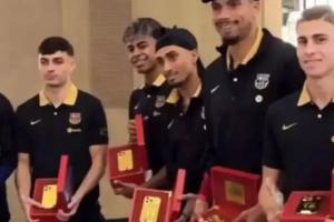 24直播12月11日讯 巴萨球员收到阿联酋公司GSA Motors赠送的定制金色iPhone 17 Pro Max。手机刻有球员姓名、号码及巴萨队徽。部分球员已获赠,其余球员将在次日收到。此举被视为商业推广,而非官方赞助,类似豪华礼物在巴萨更衣室并非首次。