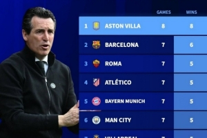 24直播12月12日讯 欧联杯维拉2-1胜巴塞尔,各项赛事豪取8连胜。德转统计显示,五大联赛球队自11月6日以来的胜场榜中,维拉以8场8高居榜首,巴萨7场6胜位列第二,罗马、马竞、拜仁等七队以7场5胜并列第三。