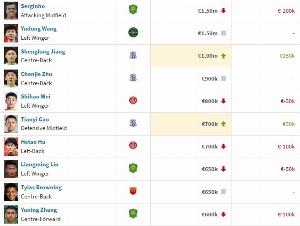 体育资讯12月17日讯 今日德转更新中超球员身价,国足球员身价中,塞尔吉尼奥与王钰栋150万欧并列第一,武磊50万欧已跌出前十,排名第13。