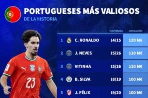 24直播12月18日讯 巴黎圣日耳曼夺冠,葡萄牙球员表现出色并身价飙升。最新榜单显示,C罗以1.2亿欧元的峰值历史第一,现役新星若昂·内维斯与维蒂尼亚以1.1亿欧元的估值紧随其后,共同构成了葡萄牙足坛的黄金一代。