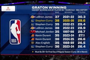 24直播12月19日讯 NBA历史35岁以上球员单赛季场均得分榜出炉。詹姆斯、库里、乔丹、杜兰特等巨星上榜。库里以三席位居榜首,詹姆斯紧随其后,传奇乔丹位列第五,彰显了超级巨星长久的巅峰统治力。