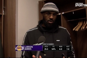 24直播12月19日讯 湖人143-135击败爵士,取得两连胜。詹姆斯赛后谈及膝盖被撞,虽年近41岁身体负荷大,但庆幸未受伤。他全场出战33分钟,高效砍下28分7篮板10助攻,展现老将风采。