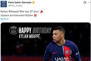 24直播12月20日讯 12月20日是姆巴佩27岁生日,其老东家巴黎圣日耳曼社媒送祝福。姆巴佩2017-2024年效力巴黎,以256球成为队史射手王。不久前,巴黎因薪资纠纷被判需赔偿他6100万欧元,他随后自由身加盟皇马。