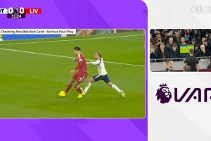 24直播12月21日讯 英超第17轮热刺对阵利物浦,哈维·西蒙斯因蹬踏范戴克被直红罚下。VAR介入后,主裁判撤销了最初的黄牌,认定其抬脚亮鞋钉击中对手小腿构成严重犯规,最终维持红牌判罚。