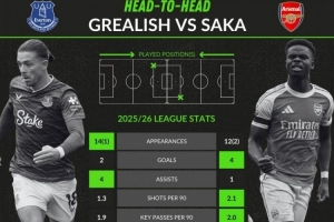 24直播12月21日讯 阿森纳对阵埃弗顿,whoscored对比了双方边锋数据。萨卡12场首发4球1助,场均2.1射、2.0关键传球、1.7过人,评分7.29分,表现更优。格拉利什14场首发仅2球4助,场均数据稍逊,评分6.98分。