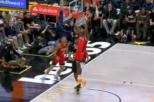 起飞暴扣!冈萨雷斯接怀特传球 大步流星杀入禁区飞身暴扣