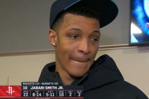 本场比赛,小贾巴里·史密斯高效发挥,打了38分钟14投8中,三分11中5、罚球2中1拿到22分10篮板2助攻2盖帽,也有4失误,正负值+21。