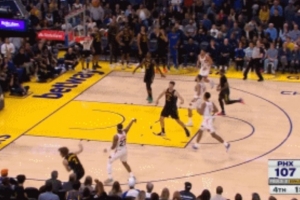 斯玛特投底角三分落地踩到科比·桑德斯 后者被吹一级恶意犯规!