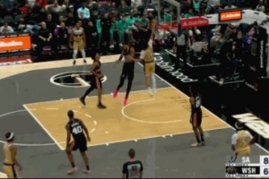摧枯拉朽!阿门冲击内线顶翻防守 转身腾空暴起双手隔扣