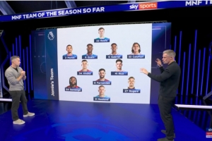 中场:扎卡(桑德兰)、B费(曼联)、赖斯(阿森纳)