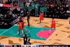 上来就有贡献!杨瀚森弧顶策应后及时跟进 力压防守补篮得手