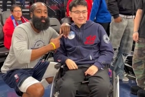之后,哈登还曾邀请约翰·郝到76人主场看比赛。在随后的采访中,哈登的发言更让人动容:“约翰·郝是我的幸运符,我们一直保持联系,我觉得我有责任在他生命中给予一点光明。”