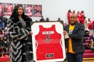 里奇亚·杰克逊高中5号球衣退役,她曾带队实现三连冠,并成为校史得分王。