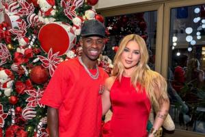 体育资讯12月25日讯 今天是西方传统节日圣诞节,维尼修斯的女友弗吉尼亚晒出了两人在圣诞树前的合照,并向粉丝球迷送出圣诞祝福,维尼修斯本人也转发了合照。