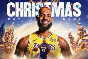 24直播12月25日讯 NBA官方预热圣诞大战,展示了詹姆斯的辉煌数据。他生涯出战19场,11胜8负,场均26.7分7.5篮板7.2助攻。他不仅是圣诞大战历史得分(507分)、总命中数(180个)和胜场数(11场)的榜首,助攻和抢断也排名第二,堪称圣诞之王。