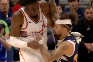 24直播12月28日讯 NBA常规赛太阳战胜鹈鹕。第三节末段,马威与阿尔瓦拉多冲突双双被驱逐。太阳主帅奥特赛后表示,背靠背赛程导致球员睡眠不足,易引发此类状况。