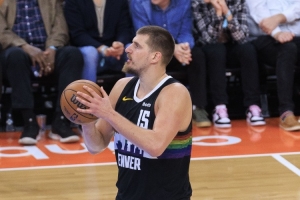 约基奇出战38分钟01秒,22投11中,13罚12中,砍下34分21篮板12助攻。