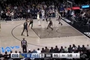 谢顿·夏普展现个人能力,抢断后快攻一条龙,高高跃起奉献精彩大风车扣篮。
