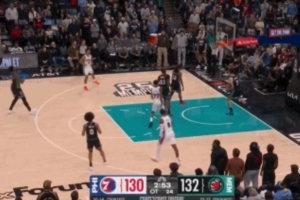 行云流水!邓恩抢断后发动反击,送出精妙抛传,助攻科林斯完成空接暴扣。