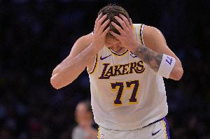 湖人衔接段两次被活塞拉开两位数分差,摆在湖人面前的一个现实是东契奇不能下。