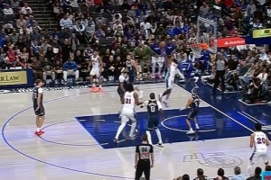 GIF-乔治突破抹过浓眉,单臂大力抡扣!