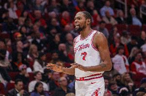 本场比赛,杜兰特在37分钟的时间里,投篮15中8,三分球7中2,罚球4中4,拿到22分5篮板11助攻(全场最高)的数据。