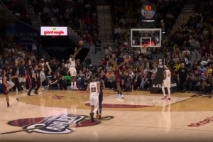 东契奇精准长传连线詹姆斯,后者篮下轻松接球得分。