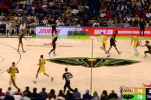 小波特第三罚不中 雷迪克看到后跳起挥手示意詹姆斯赶紧进攻