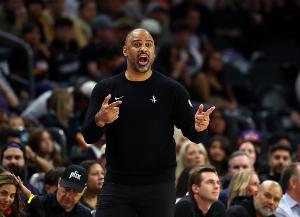 谈到本场三分投射不佳,他说:“要是能多进几个三分,或许能掩盖我们其他方面的不足,但我们的防守根本没发挥出应有的水平。不过话说回来,我们还是把对手的得分限制在了103分。前三节半一直吊儿郎当,不管怎么说,这样的表现本来就不配赢球。最后那个补篮确实很接近,但是我们必须做得更好,现在可是一月份了。”