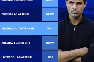 以下为阿森纳本赛季英超对阵Big6球队战绩: