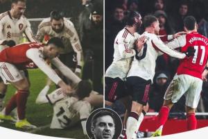 对此曼联名宿加里·内维尔表示:马丁内利的行为可耻,利物浦球员应该冲过去揍他一顿。