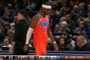 亚历山大首节效率不高,出战11分钟7投1中,三分3中0,罚球2中1仅得3分2篮板3助攻。