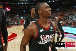 想啥呢?兰德尔表情古怪 神情“着迷”地上下来回扫视文班全身!
