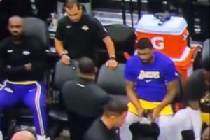 视频中复盘的球迷破防:“雷迪克正想对全队讲话呢,勒布朗你人在哪?有人看到勒布朗了吗?原来他在那儿像个小媳妇儿一样闹情绪呢。”