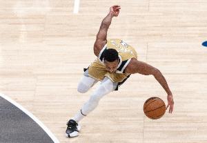 上半场,CJ·麦科勒姆进攻手感不错。他出战15分04秒,14投7中,三分5投1中,罚球2中1,拿下16分,其余正向数据皆为0,没有失误,正负值为-5。