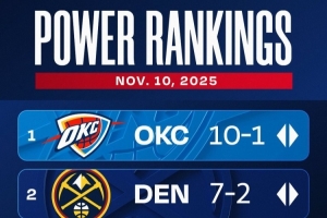 24直播11月11日讯 最新球队实力榜发布,雷霆与掘金稳居前二。火箭升至第三,尼克斯升至第四。湖人下滑至第六,骑士与马刺分别位列第五和第七。热火和猛龙等队排名显著上升,而太阳和凯尔特人等传统强队则有所下滑。