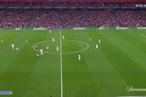 B费开场射门击中防守球员手臂后反弹入网,裁判未予理会,B费向裁判提出申诉。
